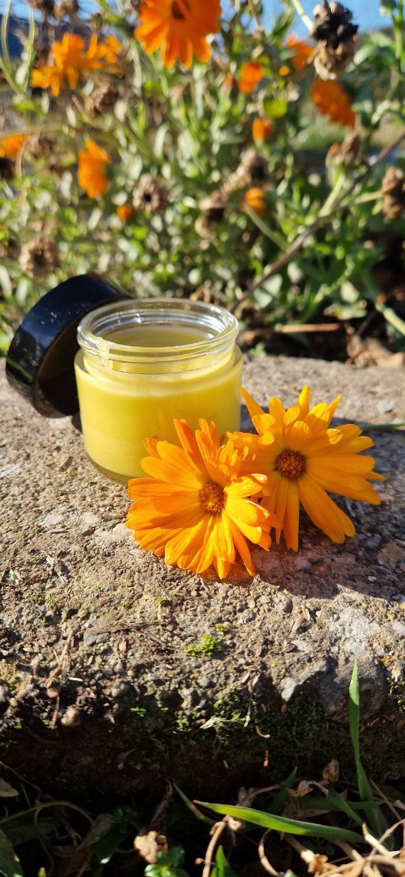 Ringelblumensalbe kann sehr gut bei trockener Haut, Akne, Risse, kleinere Wunden usw. angewendet werden.
